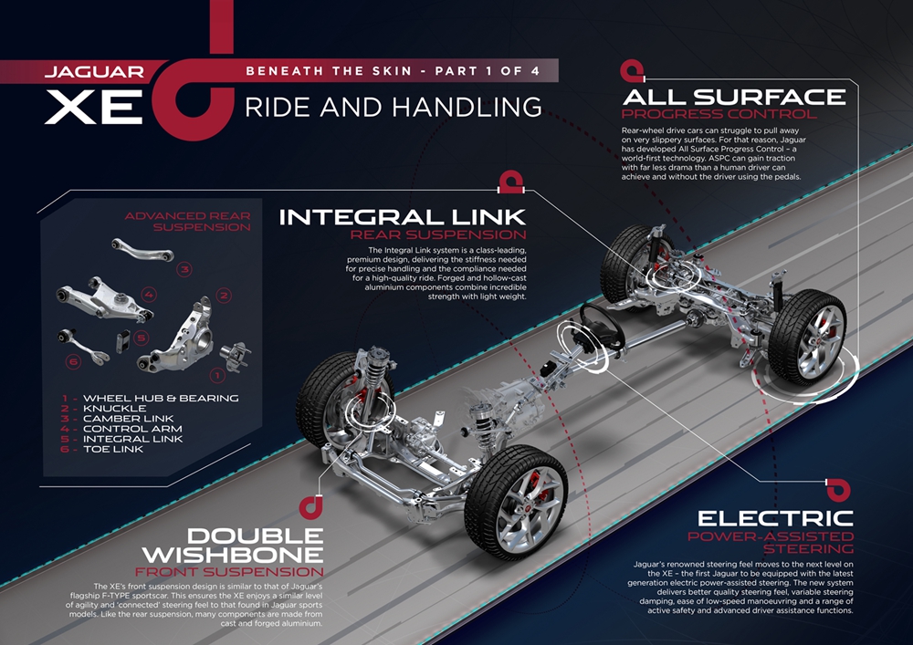 While it is the blend of attributes that achieves what is required, Stanton puts steering at the top of the list: “It is the heart and soul of the XE and the driver’s salient connection to the car. Our electric power steering may seem a bit quick to some, but it differentiates us from the competition and through it—within the first 50 meters of driving—you know you are in a Jaguar.”