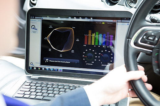 在手握方向盤(pán)的同時(shí),觀察屏幕上像波浪般滾動(dòng)的α和β腦電波圖形,這無(wú)疑是汽車(chē)研發(fā)中最奇特的景象之一。但這的確是捷豹路虎正在進(jìn)行的一項(xiàng)研究——如何使用高度精細(xì)的技術(shù)手段,幫助消除駕駛員的疲勞和注意力分散對(duì)駕駛行為的負(fù)面影響。