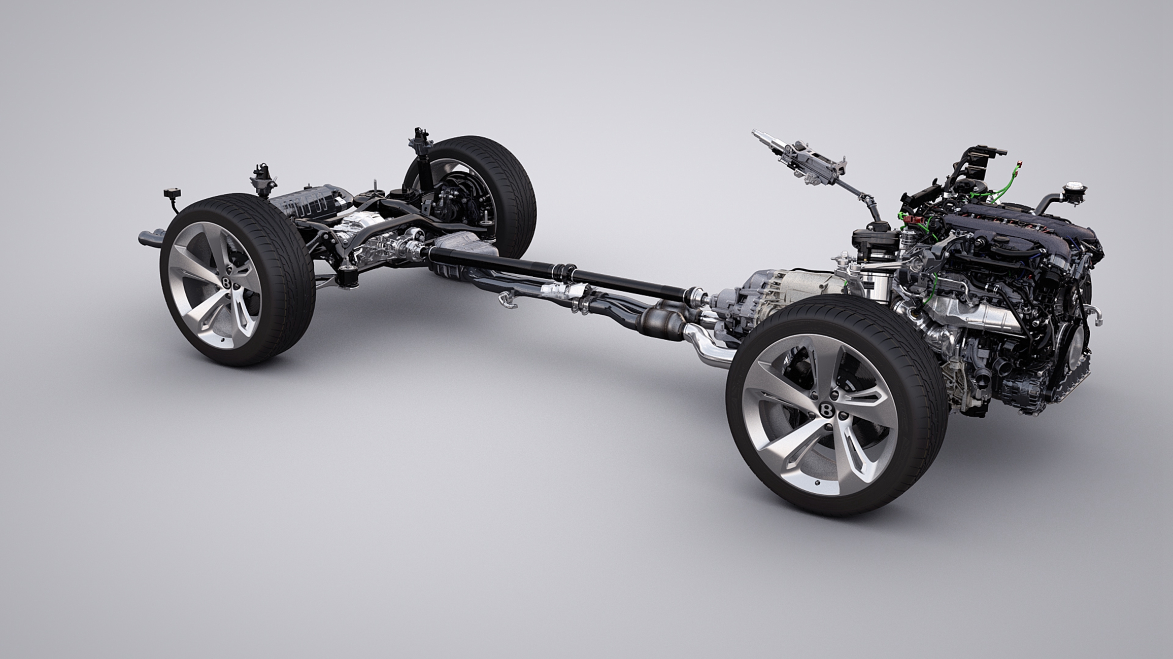 Peter Guest, Product Line Director for Bentayga, stated: “The chassis (suspension includes four double wishbones front; trapezoidal multi-link rear, self-leveling air system, Continuous Damping Control) is all new from ground up, and includes a very innovative active roll control.” This uses a 48-V system to provide “silent, instantaneous responses and sufficient power on hand to deal with all road surfaces."