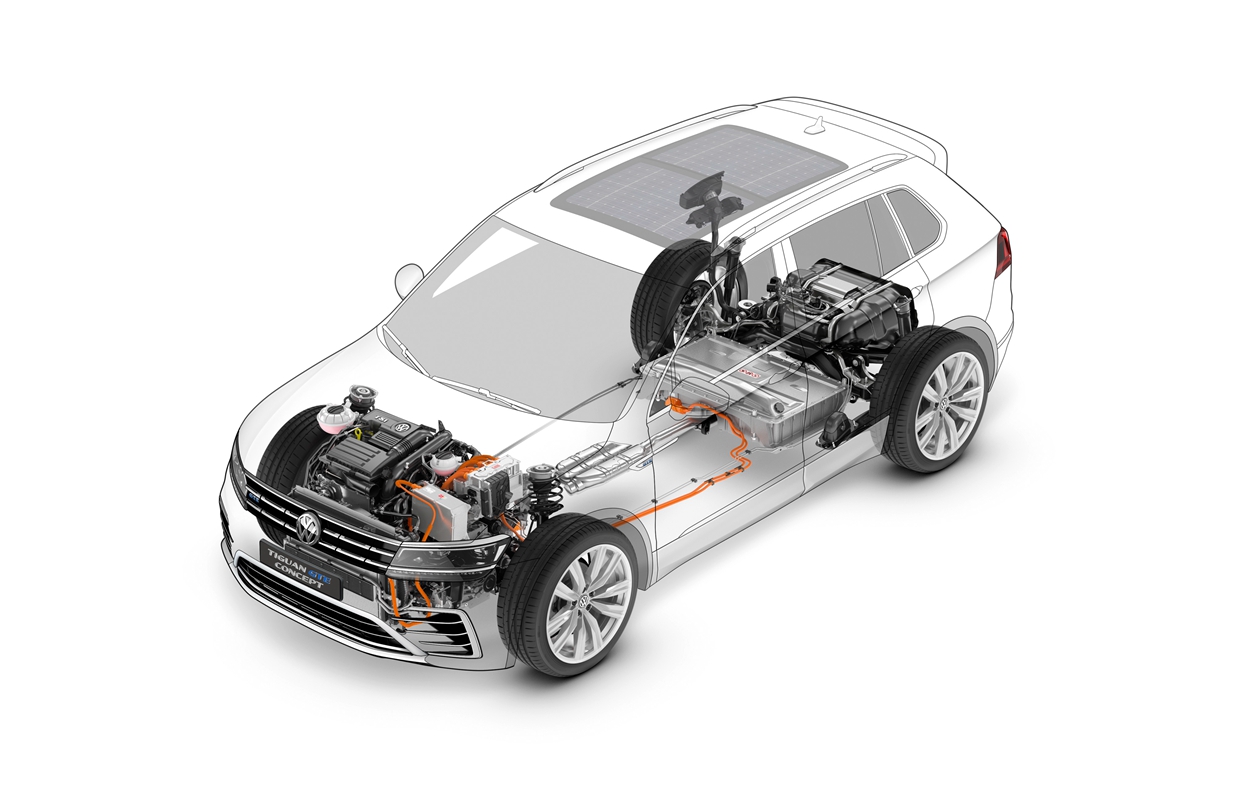 While the new Tiguan goes on sale in 2016, the company is less specific about plans for the hybrid-electric concept version also shown at Frankfurt. Its internal combustion engine is a 115-kW (154-hp) turbocharged gasoline four-cylinder, which combines with an electric motor for a maximum system output of 160 kW. They drive the vehicle through a six-speed dual-clutch transmission.