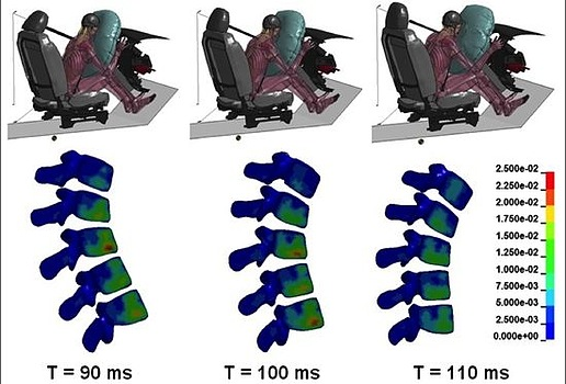 One of the academic institutions that uses THUMS 4 is a team of modelers at Wake Forest University: “We’ve reconstructed about eleven motor vehicle crashes—both frontal and side impacts—that caused acute injuries,” said Ashley Weaver, Assistant Professor of Biomedical Engineering. “By simulating real-world crashes, we can study the effect of vehicle design parameters, safety features, and occupant factors to improve safety.”