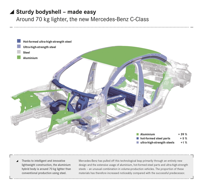 Talking about carbon fiber, we do have a quite extensive experience using it as a lightweight material; we use CRP materials in Mercedes-Benz cars, especially within the area of our high-performance cars from Mercedes AMG, to improve the performance and of course save weight. Since carbon fiber is still a very cost-intensive material, the main focus is on hybrid (body) shells with an intelligent mix of all steel grades and advanced aluminum alloys in mass production.