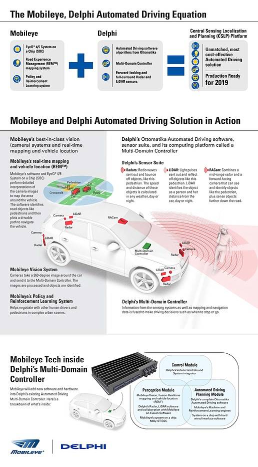 In August 2016, Delphi announced its partnership with Mobileye to develop the sensor-fusion aspects required for high-level automated driving. A few months later, the company confirmed it had enlisted Intel to supply the advanced processing chipset that will enable trillions of calculations per second.