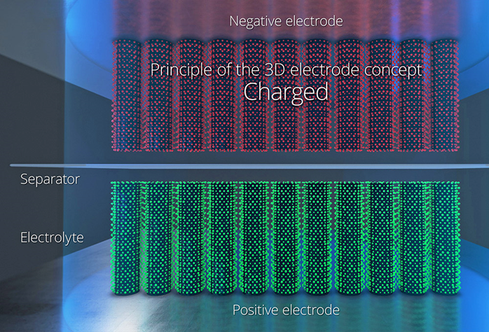 從力學(xué)上看,VACNT 納米管可以像“籠子”可以減少電極的體積膨脹,從而使其能夠在比粉末電極更小的“應(yīng)力”下工作:“簡(jiǎn)單地說,這意味著離子僅需移動(dòng)幾納米即可穿過圓柱形的立體電極材料,但如果電極材料是平面的,則離子則可能需要移動(dòng)幾微米。”Boulanger 表示,新結(jié)構(gòu)“從根本上提高了電池的充電和放電速率”。此前,NAWA公司還曾發(fā)布過“下一代超級(jí)電容器”(名為超快充碳電池)產(chǎn)品。公司稱,這款超級(jí)電容器擁有超高的充放電速度,且取得了“市面上最低的電氣串聯(lián)電阻值。”