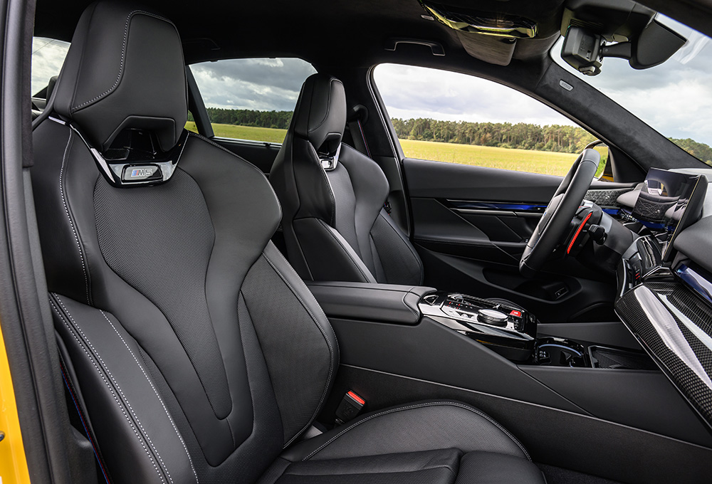 That includes a bass-heavy growl played through the Bowers & Wilkins audio system that accompanies the natural tune of the V8 and four large-bore, dual-flap tailpipes. A racy interior includes BMW’s Curved Display that conjoins a 12.3-inch driver’s screen and a 14.9-inch center display. An“ Interaction Bar” stripes the dash and door panels with a crystal-like slab that integrates both haptic controls (that actually work) and sizzling lighting tied to vehicle functions. Uhura and Chekov would approve.